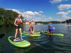 SUP: połączenie kajakarstwa i surfowania czyli nauka pływania na desce z wiosłem, relaks i wiatr we włosach + wyprawy i regaty;