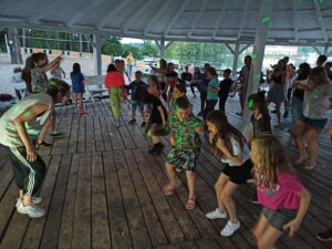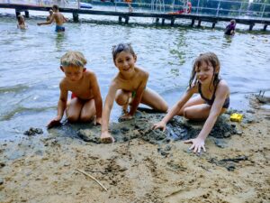 RAMOWY PROGRAM (pełen program dostępny wyłącznie na turnusach 13 dniowych)*: KĄPIELE: bez limitu kąpiele na wydzielonym kąpielisku pod okiem naszego ratownika z uprawnieniami WOPR; |