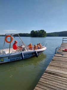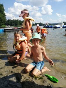 | Od uczestników kolonii nie jest wymagana umiejętność pływania. W trakcie zajęć na wodzie (motorówka, trampolina wodna, wodne dmuchańce, supy, rowery wodne…) dzieci zabezpieczone są sprzętem asekuracyjnym (kamizelkami ratunkowymi dopasowanymi indywidualnie do dziecka). |