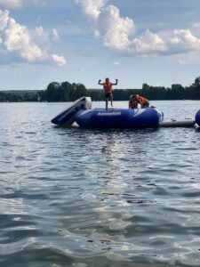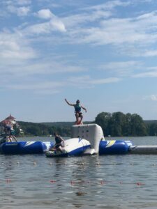 KOLONIJNY PARK WODNY: skoki na wodnym batucie-trampolinie, zjazdy do wody, wyskoki z platformy, podrzuty z katapulty i wspinaczka po ściance;