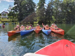 | Aby zapewnić dzieciom bezpieczną zabawę i kompleksową opiekę liczebność grup nie będzie przekraczała 15 osób. Proponowany przez nas program zakłada wspaniałą zabawę pod czujnym okiem wychowawców i instruktorów. Zajęcia odbywają się w cyklach tematycznych, w trakcie dnia zapewniamy około 8 godz. zajęć zgodnych z ramowym programem. Od uczestników kolonii nie jest wymagana umiejętność pływania. W trakcie zajęć na wodzie (motorówka, trampolina wodna, wodne dmuchańce, supy, rowery wodne, kajaki…) dzieci zabezpieczone są sprzętem asekuracyjnym (kamizelkami ratunkowymi dopasowanymi indywidualnie do dziecka). |