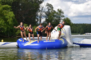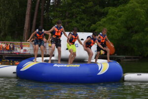 TYLKO U NAS 🙂 Wielofunkcyjny, profesjonalny, atestowany i bardzo stabilny PARK WODNY amerykańskiej firmy AQUAGLIDE. W zestawie: trampolina wodna, batut wodny, dwie platformy, zjeżdżalnia, równoważnia, katapulta i ścianka wspinaczkowa AQUAGLIDE CLIMBING WALL 🙂