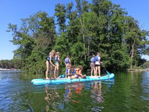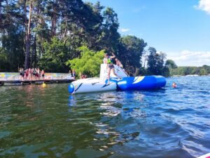 A wieczorem po niezapomnianych przeżyciach, proponujemy prawdziwy relaks: maraton w letnim kinie, karaoke, dyskoteki, wieczór kolorów.. Zajęcia odbywają się w cyklach tematycznych, w trakcie dnia zapewniamy około 8 godz. zajęć zgodnych z ramowym programem. Od uczestników obozu nie jest wymagana umiejętność pływania. W trakcie zajęć na wodzie (motorówka, trampolina wodna, wodne dmuchańce, kajaki…) młodzież zabezpieczona jest sprzętem asekuracyjnym (kamizelkami ratunkowymi indywidualnie dopasowanymi). |