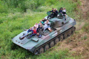 | Obóz przeznaczony dla młodzieży, której zawsze za mała było rozgrywek i kulek… Symulacja pola walki, tor przeszkód, przejazd wozem bojowym…