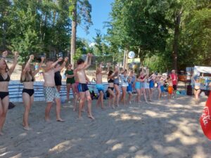 RAMOWY PROGRAM (pełen program dostępny wyłącznie na turnusach 13 dniowych)*: KĄPIELE: bez limitu kąpiele na wydzielonym kąpielisku pod okiem naszego ratownika z uprawnieniami WOPR;