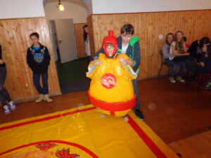 | ZABAWY i ZAJĘCIA INTEGRACYJNE: bilard, pokaz mody, karaoke show, akrobacje na macie TWISTER, turniej SUMO, turniej tenisa stołowego |